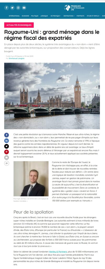 Discover my article on the Français à l’étranger website. The Français à l’étranger article from September 30, 2022 highlights the expertise of Cyril Jarnias, an international real estate wealth manager. It explains current market trends, including the growing interest in destinations like Portugal, Spain, and Greece, where tax benefits and attractive prices appeal to French investors.